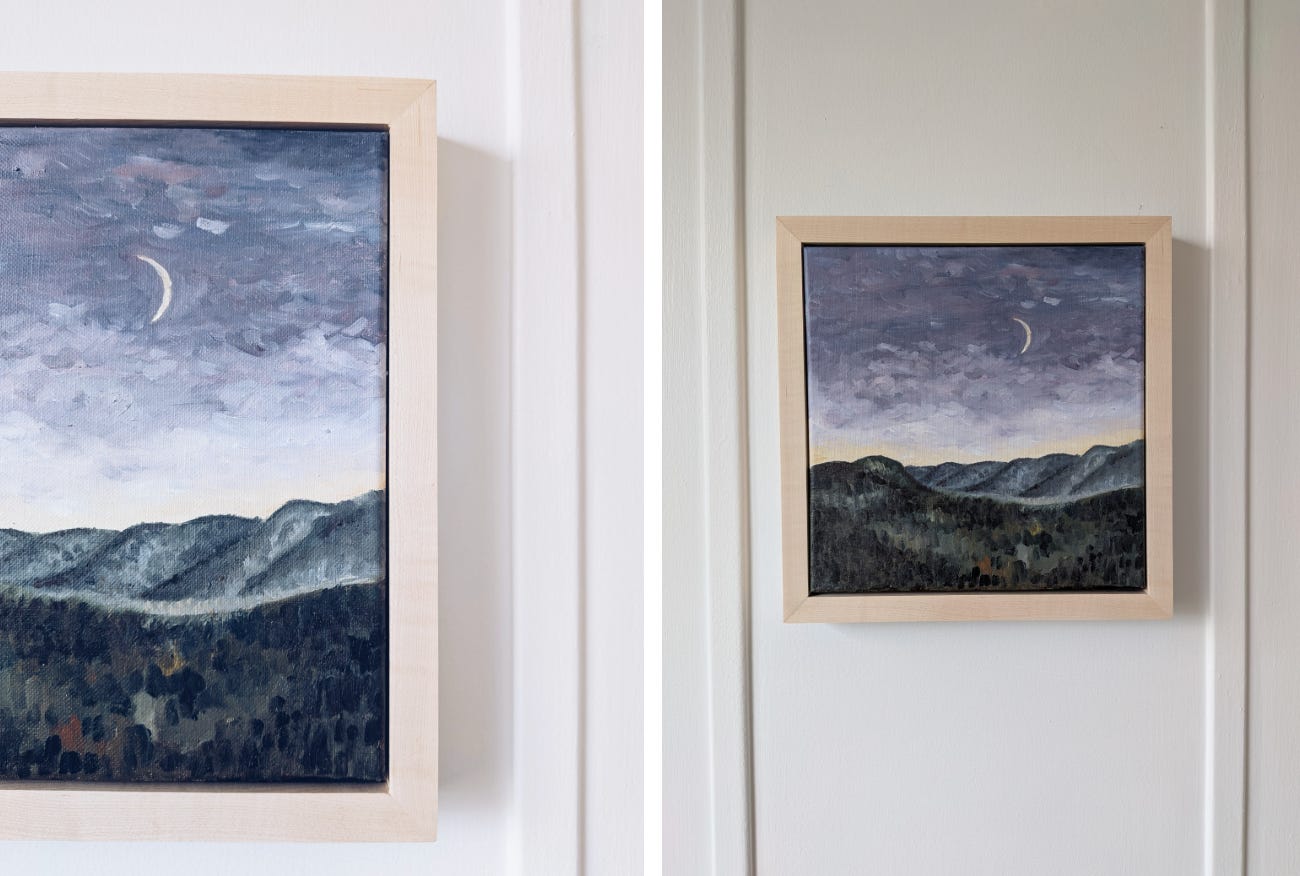 Jamie made a custom maple wood frame for my latest oil painting, which makes it feel even more special. It can be found in the Etsy Shop.